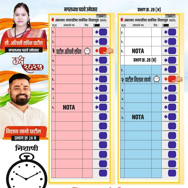 - मी निशान नागो पाटील २८ ब मधून राष्ट्रवादी काँग्रेस पक्ष कडून निवडणूक लढवत आहे